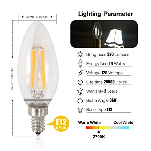 - Energy Saving: This 40 watts equivalent B11 LED bulb with candelabra base uses only 3.5 watts of energy; save electricity bill.