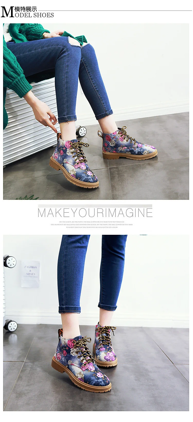 style 2::women Boots flower print