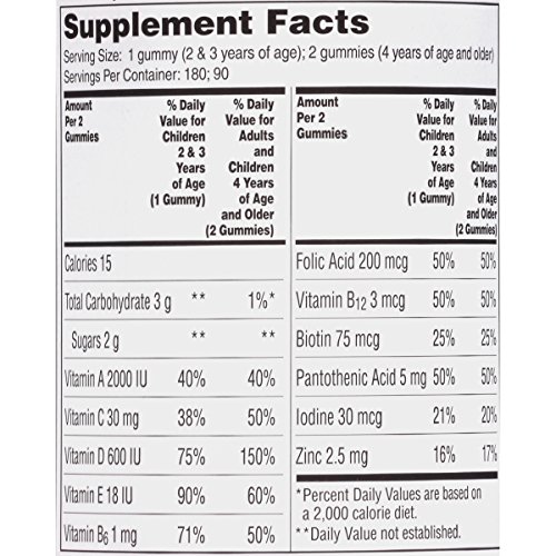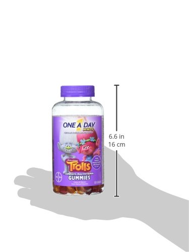 One A Day Kids Trolls Multivitamin Gummies offer a wide variety of vitamins and minerals. This easy to chew gummy contains key nutrients specially selected for nutritional support for growing children. One A Day Kids Multivitamin Gummies come in a fun Trolls shaped multivitamin that contains Vitamins A, B6, B12, C, D, and E, Biotin, Folic Acid, Zinc, Pantothenic Acid, and Iodine. One A Day Kids Trolls Multivitamin Gummies are formulated to support:* bone health, immune health, and eye health. Under adult supervision product should be fully chewed. Children 2 to 3 years of age should fully chew one gummy daily. Adults and children 4 years of age and older should fully chew two gummies daily. One A Day Multivitamins can provide nutritional support that you and your family may need at every life stage.Feature