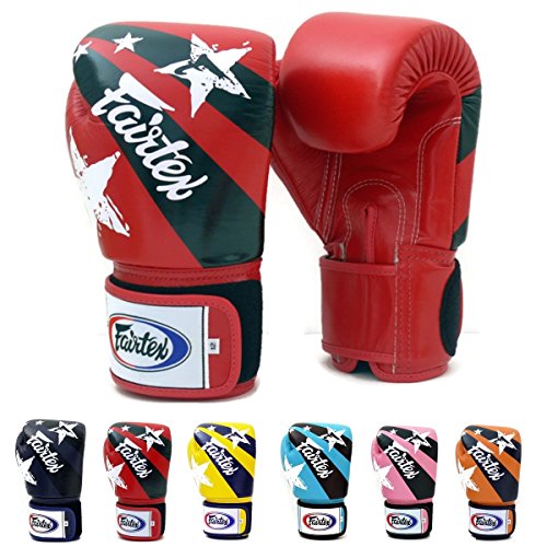 Fairtex Muay Thai Boxing Gloves BGV1 Limited Editon Nation Print Color: Pink Yellow Red Blue Size: 10 12 14 16 oz Training & Sparring All Purpose Gloves for Kick Boxing MMA K1 Tight Fit Design
