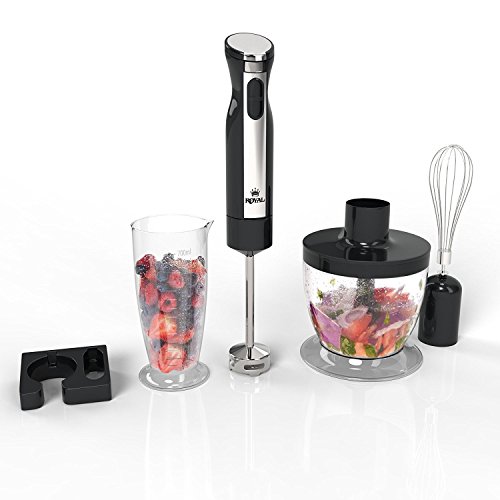 Royal 5-Piece Hand Blender Set [200 Watts] - 2 Speed Food Processor/Chopper, Hand Mixer, and Immersion Smoothie Blender, Whisk and Wall attachment