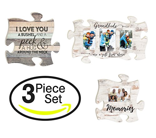 Grandkids Love a Bushel Peck Memories Puzzle Piece Interlocking Wall Plaque and Frames Set of 3