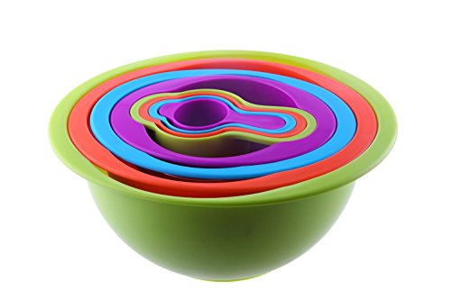 Strainer - Multiple Functional Plastic Basket Set, Measuring Cups, Mesh Strainer, Colander, Cooking, Multi Color Food Storage Containers - 8 Piece Set - 12.50"L x 10.50"H x 5.25"W