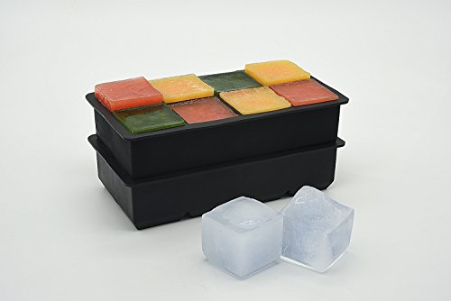 hyhjh Silicone Ice Cube Tray, Set of 2, 8 Grids,No Odor or Aftertaste- 2 Inch Cubes Ice! (black)