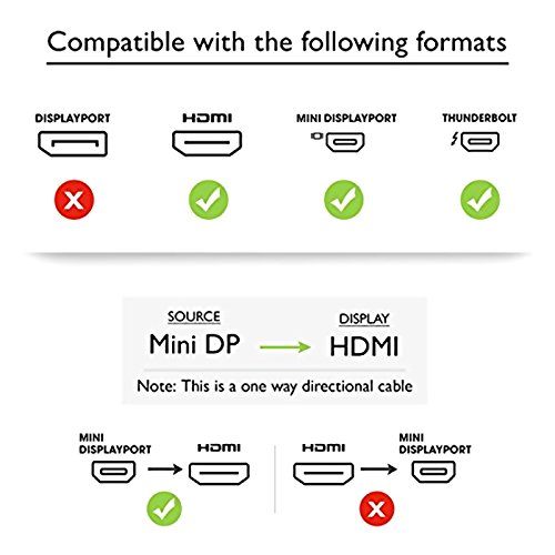 HDE 4K UHD Mini DisplayPort 1.2 to HDMI (Thunderbolt Port Compatible) Cable 2160p Ultra High Definition Display Adapter for HDTV, PC Windows, Apple MacBook Air, Pro, and Surface Tablets (15ft)
