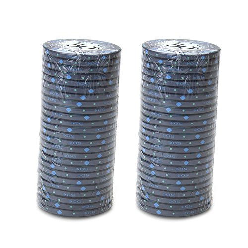 Brybelly Scroll Poker Chip Lightweight 10-gram Casino Grade Ceramic - Pack of 50 ($0.50 Navy Blue)