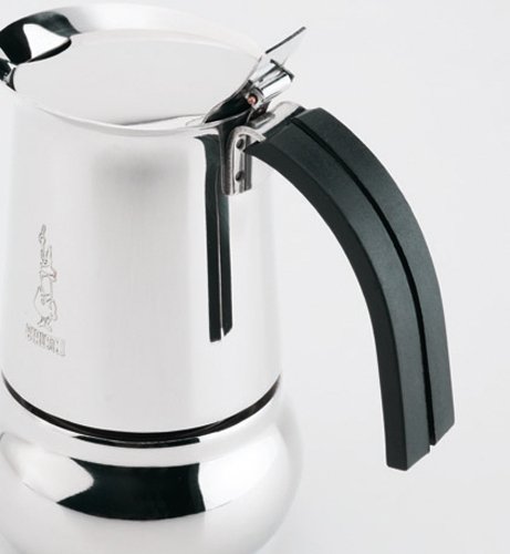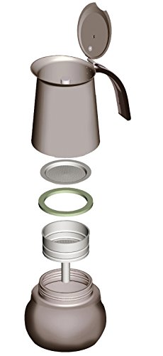 Bialetti's Kitty espresso maker features a modern upscale design made of 18/10 stainless steel. Brew a nice cup of espresso with this Kitty espresso maker from Bialetti. With the exception of the heat-resistant bakelite handle, this stylish stove-top espresso maker is completely fabricated of stainless steel. The ergonomically designed handle has an extra wide reach, creating more distance between the body of the maker and your hand for safer handling while still allowing you to comfortably open and close the lid with the same hand. Suitable for use on gas, electric, and ceramic stove tops, it is even dishwasher safe for easy cleanup. Never use other contents besides coffee like teas, cacao powder, instant coffee or fine ground coffee as it will clog the filter plate. Bialetti is the world's most recognized and beloved Italian coffee company. Bialetti coffee makers have become iconic and has allowed millions of consumers to enjoy great Italian coffee that once was only available in cafes and restaurants. Bialetti's passion remains in making superb coffee simple. 4 cup capacity.Feature
