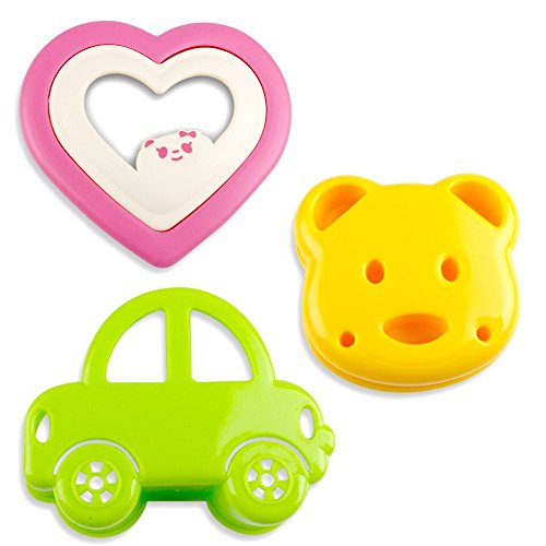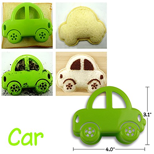 Kid Sandwich Mold | 3pcs Premium Bread Toast Pancakes Cookie Cutter with Cute Car Bear Heart Shaped Design | Green Yellow Pink | 956