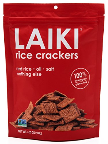 LAIKI Gluten Free Rice Crackers, Red Rice, Resealable 3.53 Ounce Bag (Pack of 8)