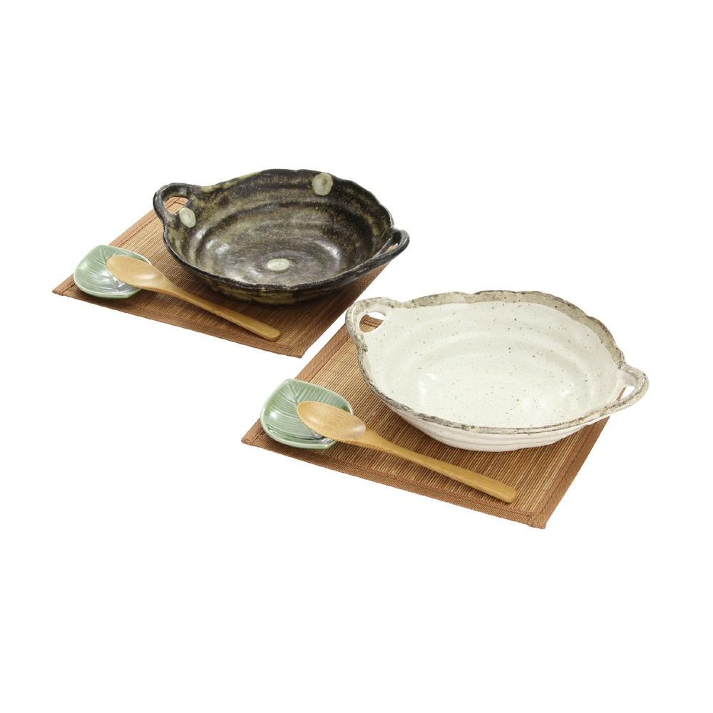 | サイズ | 鉢:25.2×20.5×H6.2cm、小皿:9×7×H1.5cm、スプーン:18.5cm、マット:24×20cm 個装サイズ:25×23×10cm |