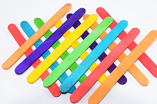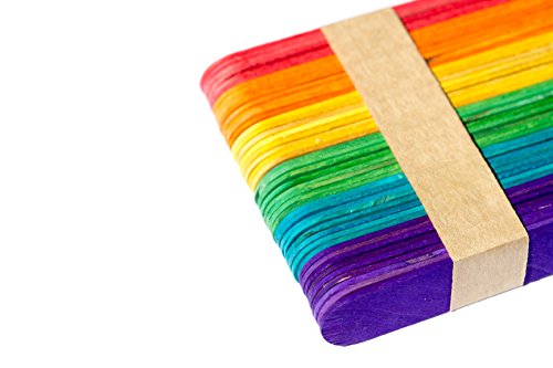 8" Super Jumbo Wood Tongue Depressor Sized Rainbow Colored Popsicle Art Craft Sticks - Pack of 50