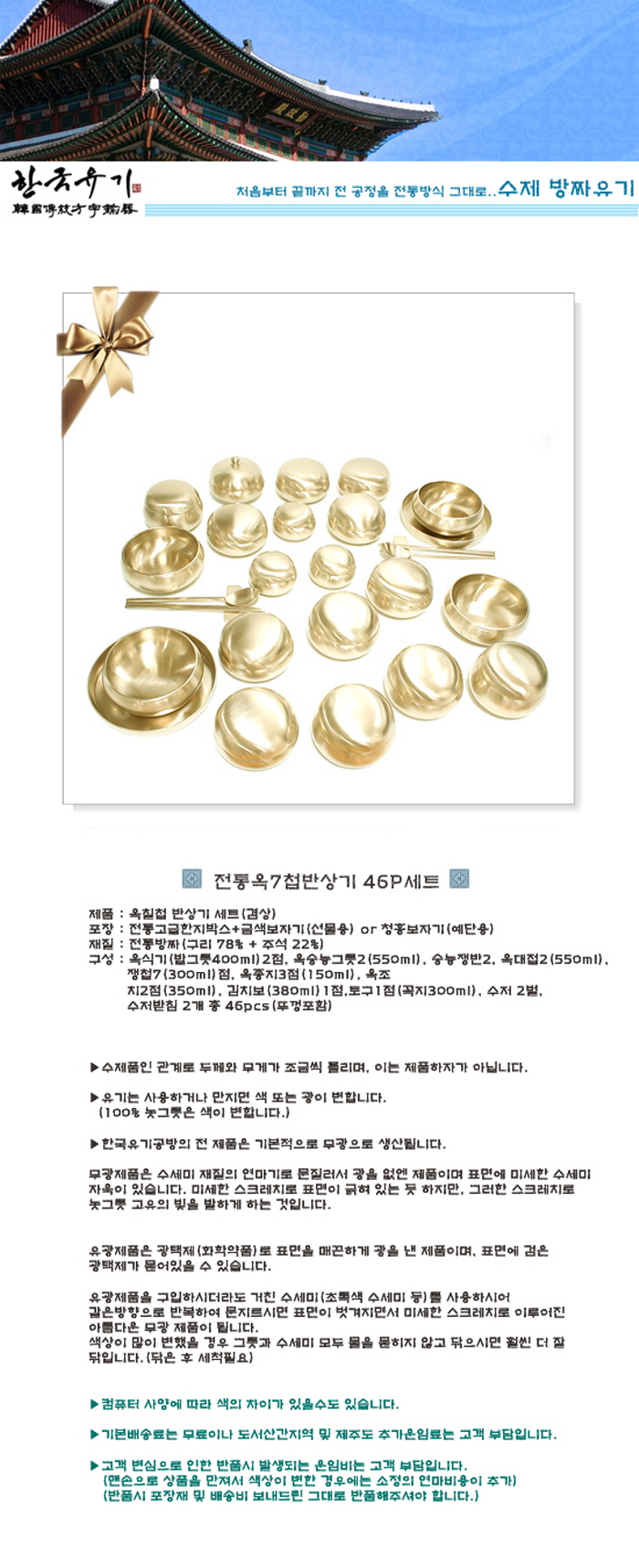 - 품명 및 모델명[한국유기-수제방짜유기] 전통옥7첩반상기 46P세트