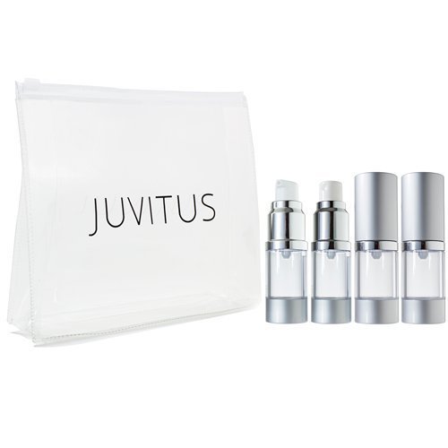 Airless Pump and Spray Bottle Refillable Travel Set with Clear Travel Bag - 10 ml / 0.34 fl oz (4 pack- 2 each spray and pump)