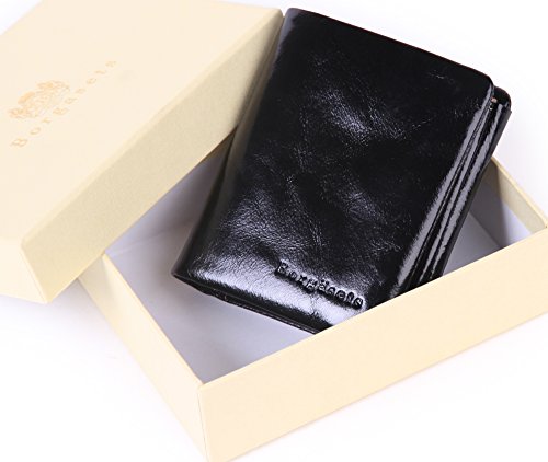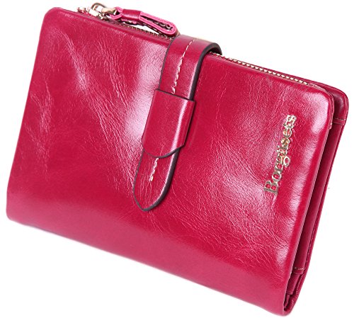 -. Title : Borgasets Women's Genuine Leather Trifold Wallet