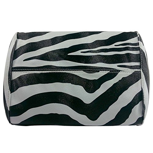 Stylish and stunning, this Zebra printed faux leather handbag is all you need to add to your attire. The improved design and the contrasted touch of the trim and handles make it stand out from the others. It comes with dual handles, thus making it easier to carry. This bag comes with 3 magnetic snap buttons and a tiny top zippered closure. Its spacious interiors will give you a larger and more defined area for your stuff making it look subtle in a smart yet simple manner. This bag is not only good for personal use but a great gift for your dear ones as well.
