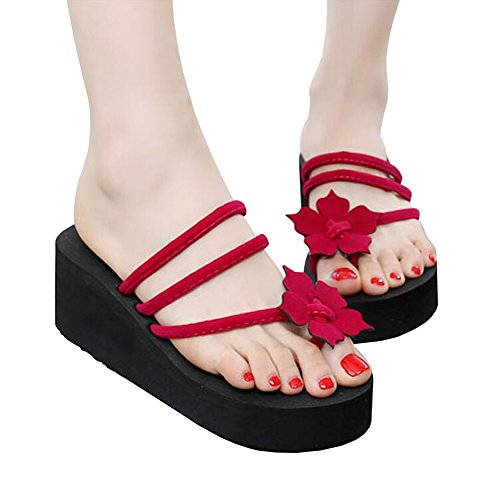 -. Title : [RSWHYY] レディース スリッパ 草履 夏 ビーチサンダル 厚底 フラワー飾り ファッション サンダル 通気性 柔らかい ヒール6cm 防水台3cm 砂浜 リゾート