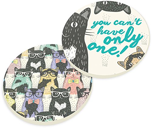 Cat Crazy, You Can't Only Have One 2 Piece Ceramic Car Coasters Set