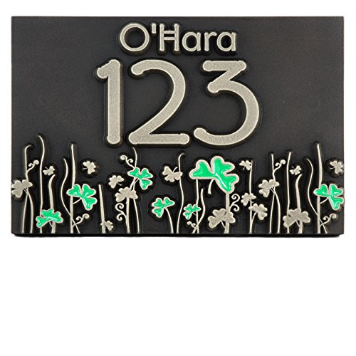 -. Title : Shamrock Address Plaque with Painted Clovers 12x8 - Raised Silver Nickel Coated