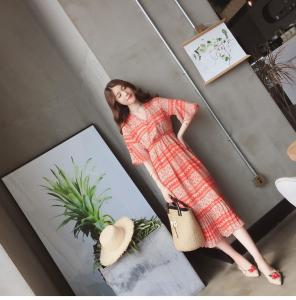 マキシ丈ワンピース フレアワンピース リゾートワンピース ペイズリー柄 Vネック フレア袖 半袖 ゆったり プチプラ 夏