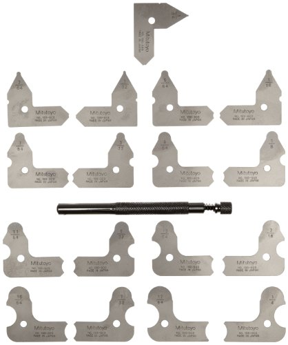 Mitutoyo 186-903, Radius Gage Set, 17 Leaves, 1/64" to 17/64" by 64ths, 5 Radii per Leaf