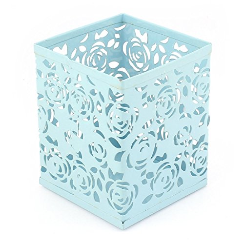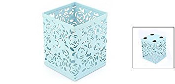 uxcell Pen Square Shaped Flower Hollow Out Mesh Case Organizer Container Teal
