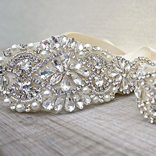 100% Handmade Designed: Gorgeous rhinestone trim attached to a 3 yards long high-end satin ribbons can be tied to wedding dress closes all the way around your waist.