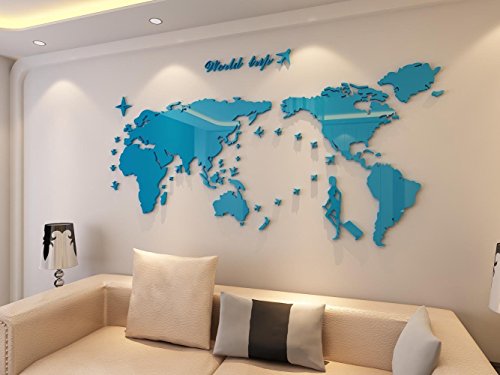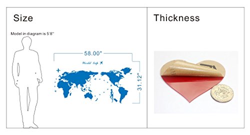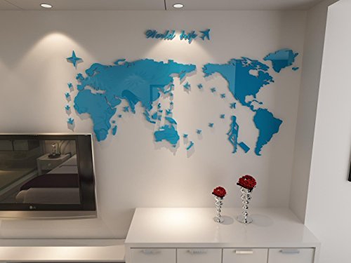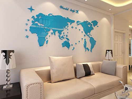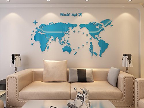 Plastic The World Trip Map Wall Stickers/Wall decals/Wall tattoos/Wall transfers (31(H) x 58(W) inches, Blue)