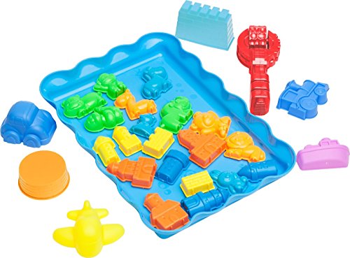 - SAND MOLDS KIT INCLUDES: 28 assorted Sand Molds featuring buildings, towers, vehicles animals, tools and play tray. Build and play for hours!
