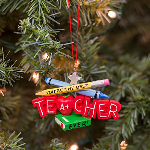You're the Best Teacher Ever Pencil and Crayon 4 x 3 Resin Stone Christmas Ornament