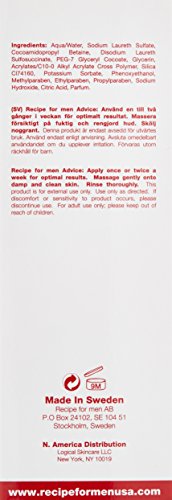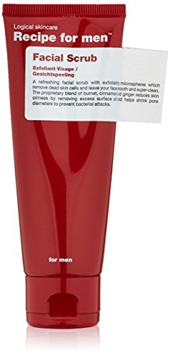 Studio : Recipe for Men Publisher : Recipe for Men Binding : Health and Beauty Product Description A refreshing facial scrub with exfoliating microspheres that peel off dead skin cells and leave your face smooth and super-clean. Burnet, ginger, and cinnamon reduce skin oiliness by removing excess surface oil and shrink pore diameters to prevent bacterial attacks. 0