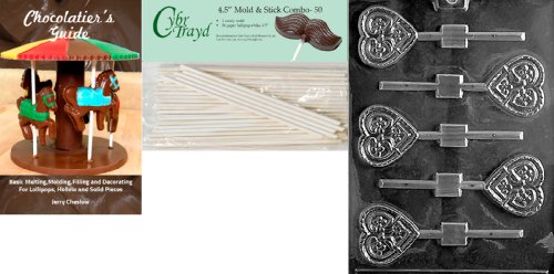 Cybrtrayd 'Love Birds Heart Lolly' Valentine Chocolate Candy Mold with 50 4.5-Inch Lollipop Sticks and Chocolatier's Guide