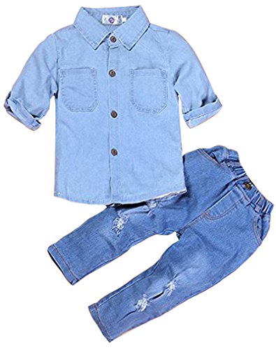 -. Binding : Apparel -. Brand : Baby World -. Department : baby-girls -. Feature : Material: Cotton / suit for any season / Turn-down Collar shirt / Hand wash is highly recommended / 100% Brand New And High Quality -. ProductGroup : Apparel -. ProductTypeName : PANTS -. Title : Baby World Fashion Girl's Ripped Jeans Denim Clothing Set Long Sleeve Shirts+Jeans