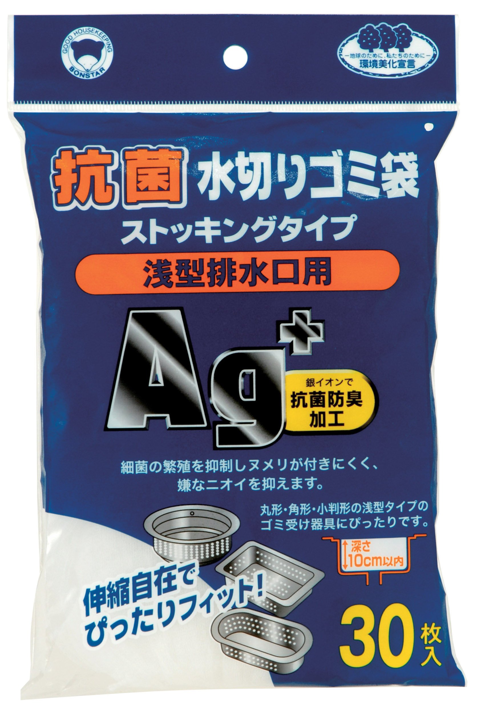 "Ag + antimicrobial draining garbage bag stocking type shallow type drain port for 30 stockings" is a draining bag that suppresses bacteria propagation by suppressing bacteria by blending silver type inorganic antibacterial agent, suppresses unpleasant odor.
