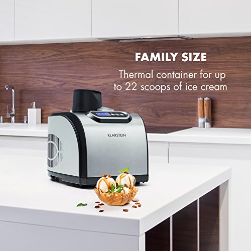 KLARSTEIN Sweet Dreams Ice Cream Maker • Ice Cream Machine • Compression Cooling: Works without Pre - Cooling • Family Size: for up to 50 fl.oz finished Ice Cream or Frozen Yogurt • Stainless Steel