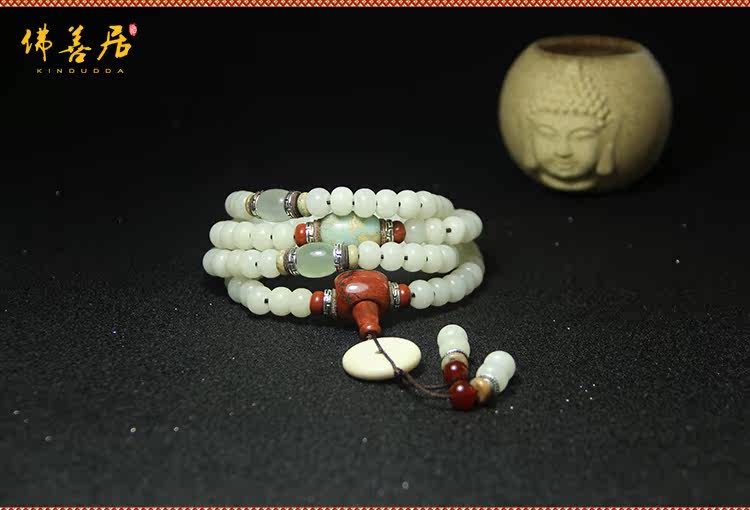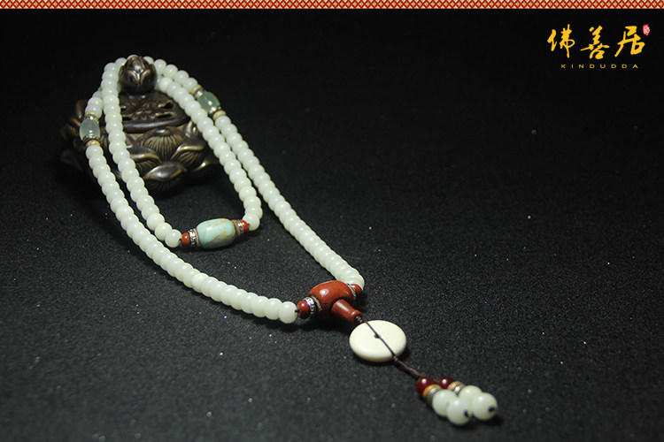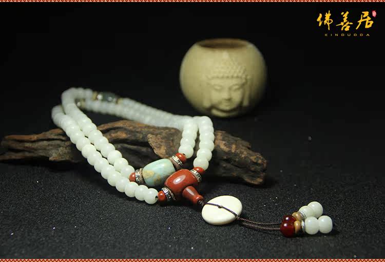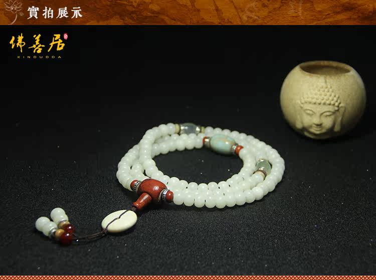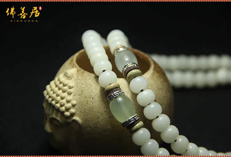 天然精品白玉菩提根108颗佛珠男女手串项链饰品