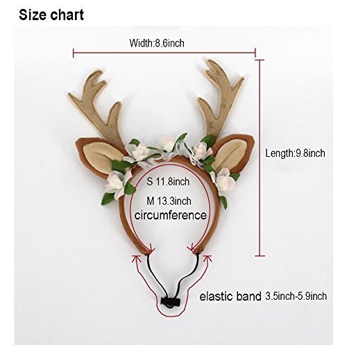 -. Feature : Pls check the size befre you buy it / With elastic headband,size is adjustable / Elk appearance, very cute and will win a lot of admiration,increasing festive atmosphere / Perfect for daily wear, weekend parties, Halloween, Christmas,parades, photo shoot or play date / Fuzzy fabric ears and headband for dog's comfort