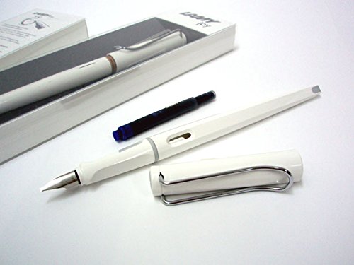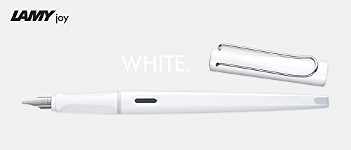 -. Binding : Office Product -. Brand : Lamy -. Color : White -. EAN : 4014519234838 -. Feature : Made of white shiny plastic. Ergonomic grip section and indestructible metal wire clip / Cartridge filling system with ink cartridge LAMY T 10 blue (can also use with converter Z 24). / Stainless steel nib with 1.1 and 1.5 mm chisel point / Designer: Wolfgang Fabian / Limited Edition White Colour -. Label : Lamy -. Manufacturer : Lamy -. Model : 1223483 -. MPN : 1223483 -. PackageQuantity : 1 -. PartNumber : 1223483 -. ProductGroup : Office Product -. ProductTypeName : OFFICE_PRODUCTS -. Publisher : Lamy -. Studio : Lamy -. Title : Lamy Joy Calligraphy Fountain Pen - Limited Edition White