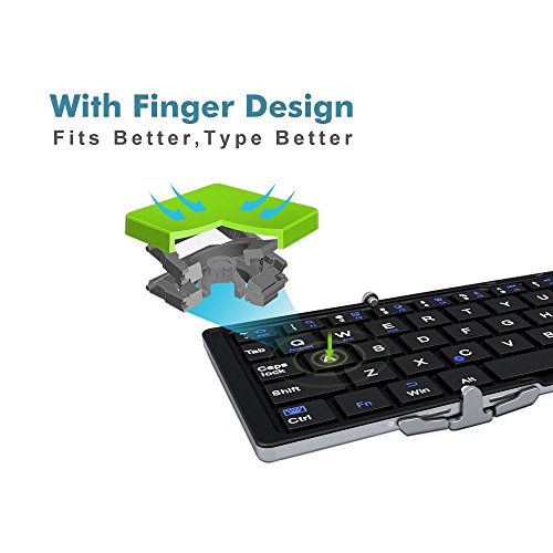 -. Feature : PC Recommend Editors' Choice Awards TOP Amazon Best Seller for Keyboards in Computer Accessories / PORTABLE & LIGHTWEIGHT: Convenient and lightweight (0.39lbs) pocket sized, tri-folding bluetooth keyboard, perfect for travel / iOS, WINDOWS & ANDROID COMPATIBILITY:Built-in Broadcom Bluetooth module with an operating range of 10 meters / ERGONOMIC & DURABLE DESIGN: Aircraft-grade aluminum alloy texture for superior durability. Auto power off and sleep mode function helps to conserve battery. Built-in rechargeable lithium battery / RELIABLE AND FRIENDLY CUSTOMER SERVICE ready to respond within a 24 hour time frame. 30-Day Money Back Guarantee, 12 Month Replacement Warranty and Lifetime Support Guarantee