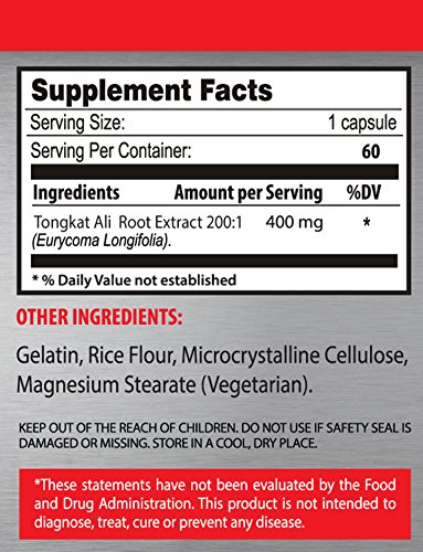 Studio : Sport Supplements, LLC Publisher : Sport Supplements, LLC Binding : Health and Beauty Product Description Testosterone booster with fat burner - TONGKAT ALI ROOT EXTRACT 200:1 400mg - LONGJACK - Tongkat ali 200 1 root extract - 3 Bottles 180 Capsules TONGKAT ALI MALE PERFORMANCE: Since Tongkat Ali can increases levels of the testosterone, it has utility as a libido-enhancer or general male sexual aid. And second Tongkat Ali can be beneficial for general male libido enhancement. Males have been using Tongkat Ali supplements for libido enhancement for centuries ever since it was first discovered as a plant in Southeast Asia. TONGKAT ALI TESTOSTERONE BOOSTER: The root of Tongkat Ali has been used to increase testosterone levels for a very long time indeed. It contains chemical compounds that studies have repeatedly shown can increase testosterone levels. An increase in testosterone has many beneficial knock-on effects for sexual performance, muscle growth and sex-drive increase. TONGKAT ALI STRENGTH REAL: Tongkat ali is also used to enhance muscle growth. If you are looking for a good way to build lean muscles then you can consider utilizing Tongkat Ali's many benefits. You can consume this natural product 30 minutes after and before your workout to avail its full benefits. TONGKAT ALI HERBS STRENGTH: May also be beneficial for increasing metabolic rates and oxidatation, supporting mental clarity and focus, improving sexual performance, promoting weight loss and stronger bones, increasing muscle mass, normalizing blood pressure, keeping you active and alert, increasing motivation and determination, enhancing good mood, reducing anxiety. 0