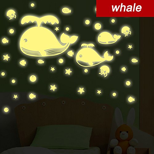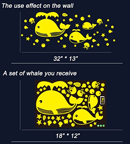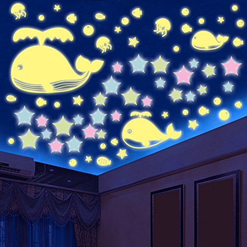 Glow in the Dark Stars 200 count and Sea World Whale Set Vinyl Wall Decals Set Wall Stickers For Kids Baby Nursery and Bedroom Ceiling Decor