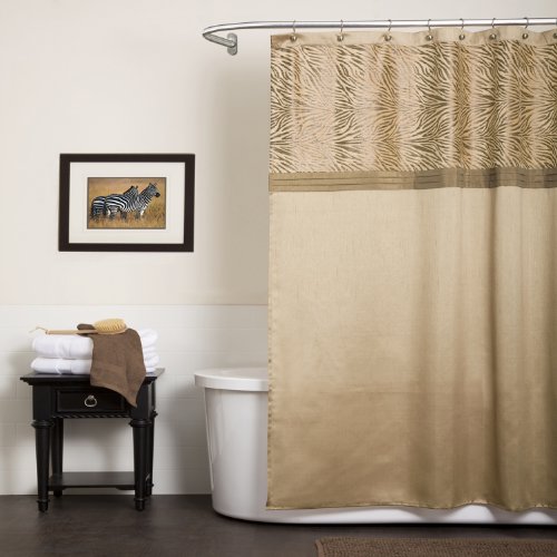 Lush Decor U15947Q12 Triangle Home Fashions Lush Decor Serengeti Shower Curtain, Tan
