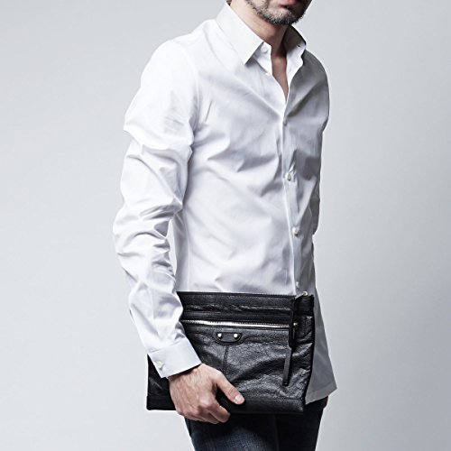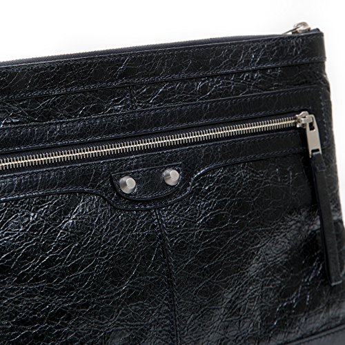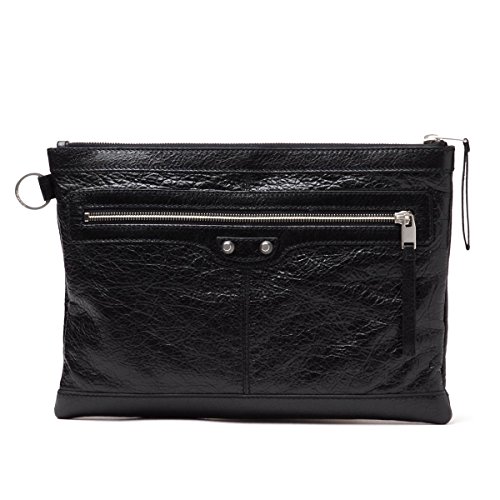 -. Feature : BALENCIAGA Leather Medium Clutch Bag 273022 / Measures 13 length x 9.5 height inches (medium) / Lambskin leather material in black with silver tone hardware, front zipper pocket / Open interior pocket, embossed BALENCIAGA trademark and serial number / New BALENCIAGA clutch bag, made in Italy. Includes authenticity cards, controllato cards, and BALENCIAGA dust-bag.
