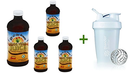 "Lily of the Desert Organic Aloe vera Juice 16 OZ (Pack of 4) + Shaker Bottle Assorted Colors 20 Oz"