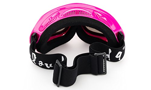 -. Feature : Product Dimensions: Width: 7" x Height 3.5" x Strap Length 9"-19" / Blocks UVA and UVB Rays, Ultraviolet Protection. Polycarbonate Lenses, Shatterproof / Anti-fog Double Lenses, Ventilation Openings Frame Design reduce fogging and optimize flow of air over inside of lens / Unique double lens design creates thermal barrier while providing clear optics and superior seal / Lined with Multidensity Face Foam, Compatible with Most Helmets. Soft Microfiber storage and Carrying Pouche Included