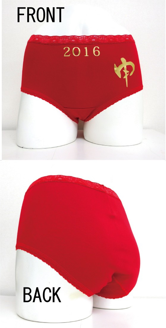 赤いショーツに豪華な金文字で申年2016のデザインが施されております。