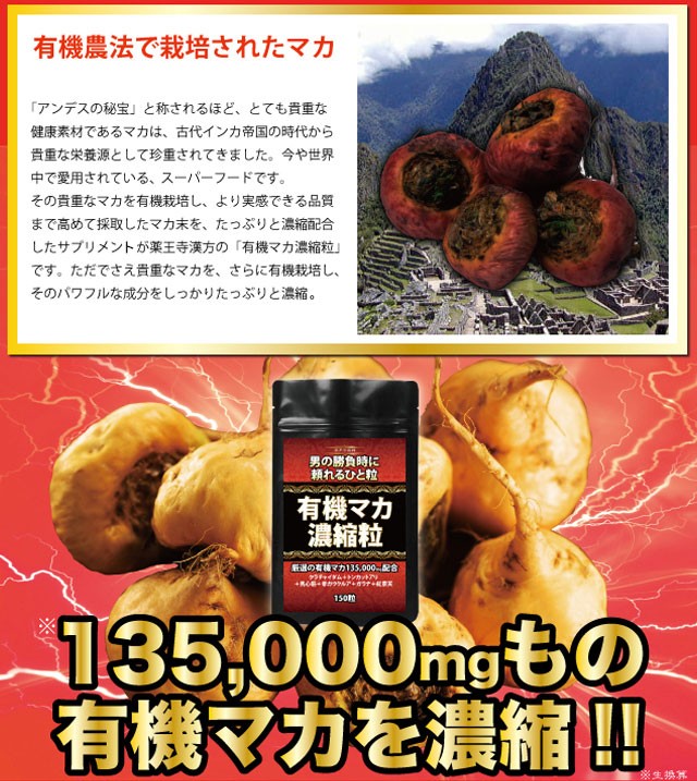 | 商品名 | 薬王寺美健 有機マカ濃縮粒150粒 |