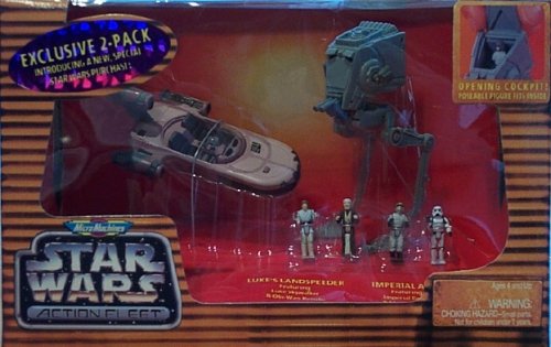 -. Title : Micro Machines Star Wars Action Fleet - Luke's Landspeeder and Imperial AT-ST