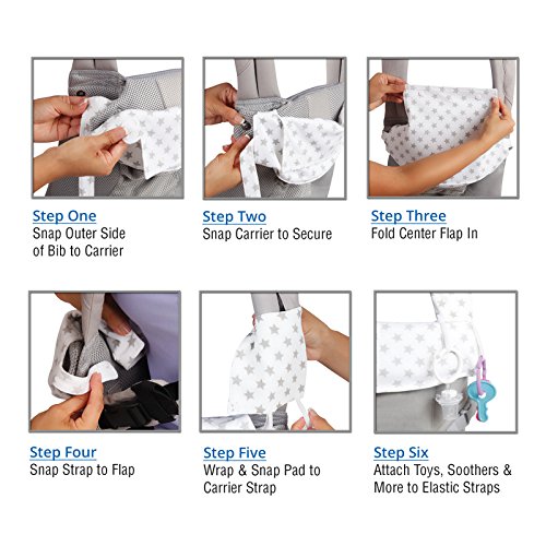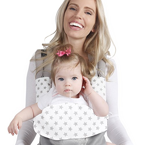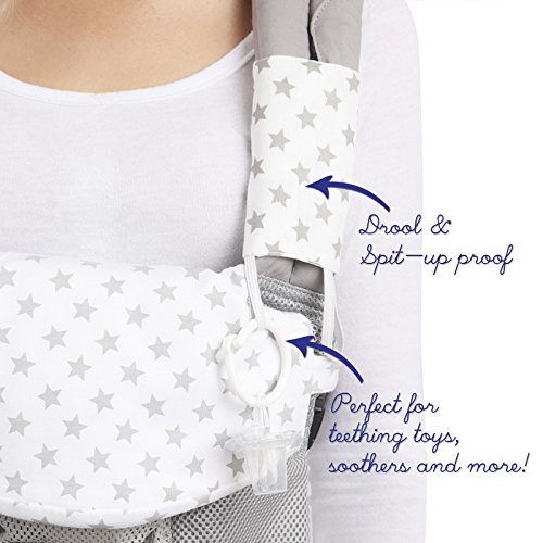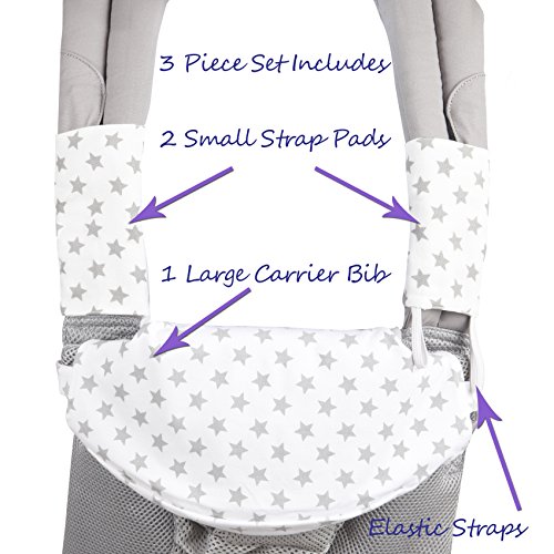 Organic Drool Bib for Lillebaby 360 - 3-Piece Set, 100% Bamboo Cotton Teething Pad & Strap Wraps for Boys & Girls | Unisex Grey Stars on White by Baby...