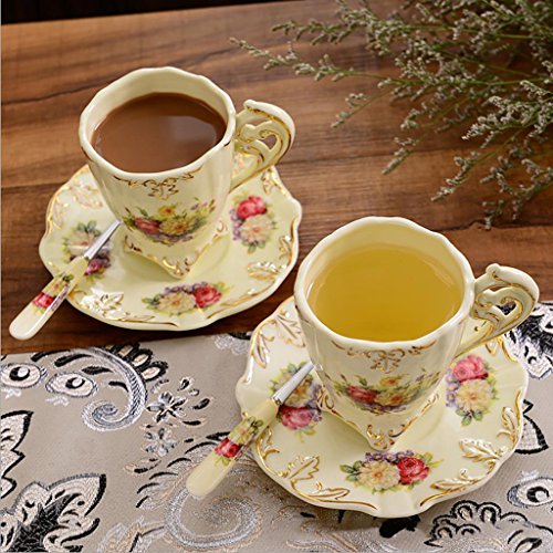 -. Title : QINQIN Continental ceramic coffee mug set of high-grade bone China cups (4 cups 4 saucers 4 spoons)