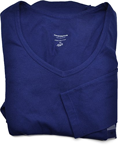 Charter Club New X-Small Navy Long-Sleeve V-Neck Sleep Shirt for Women